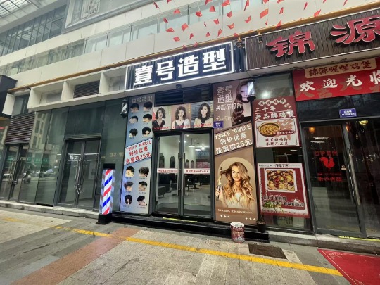 1 临街理发店店急转,面积约51平方上下两层,房租5000/月,转让包括店内所有装修设备生意,诚心有意者请到店详谈。